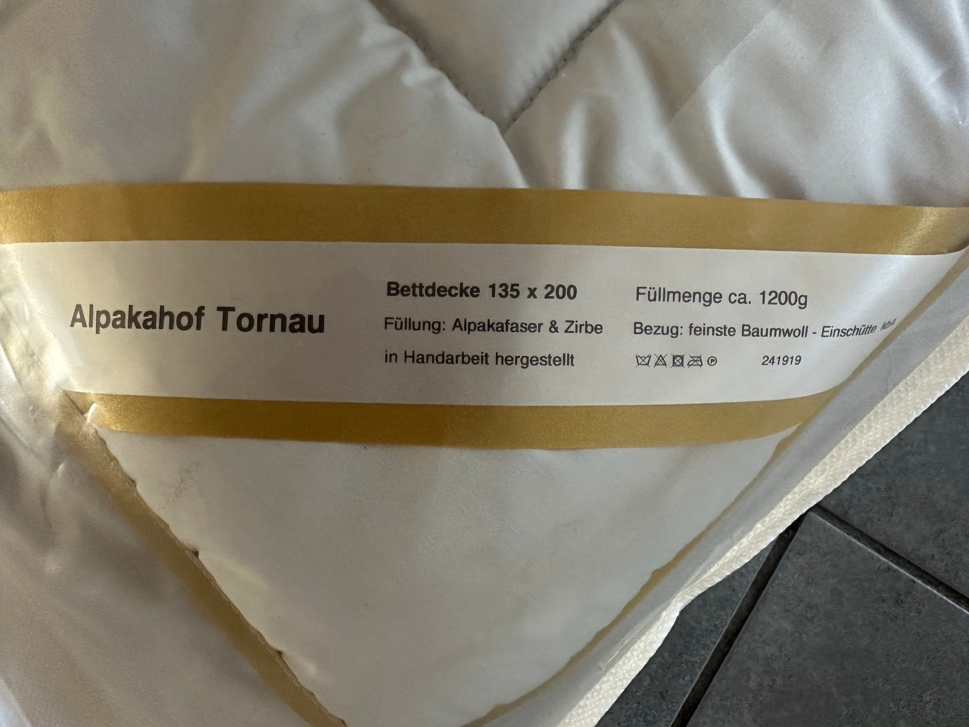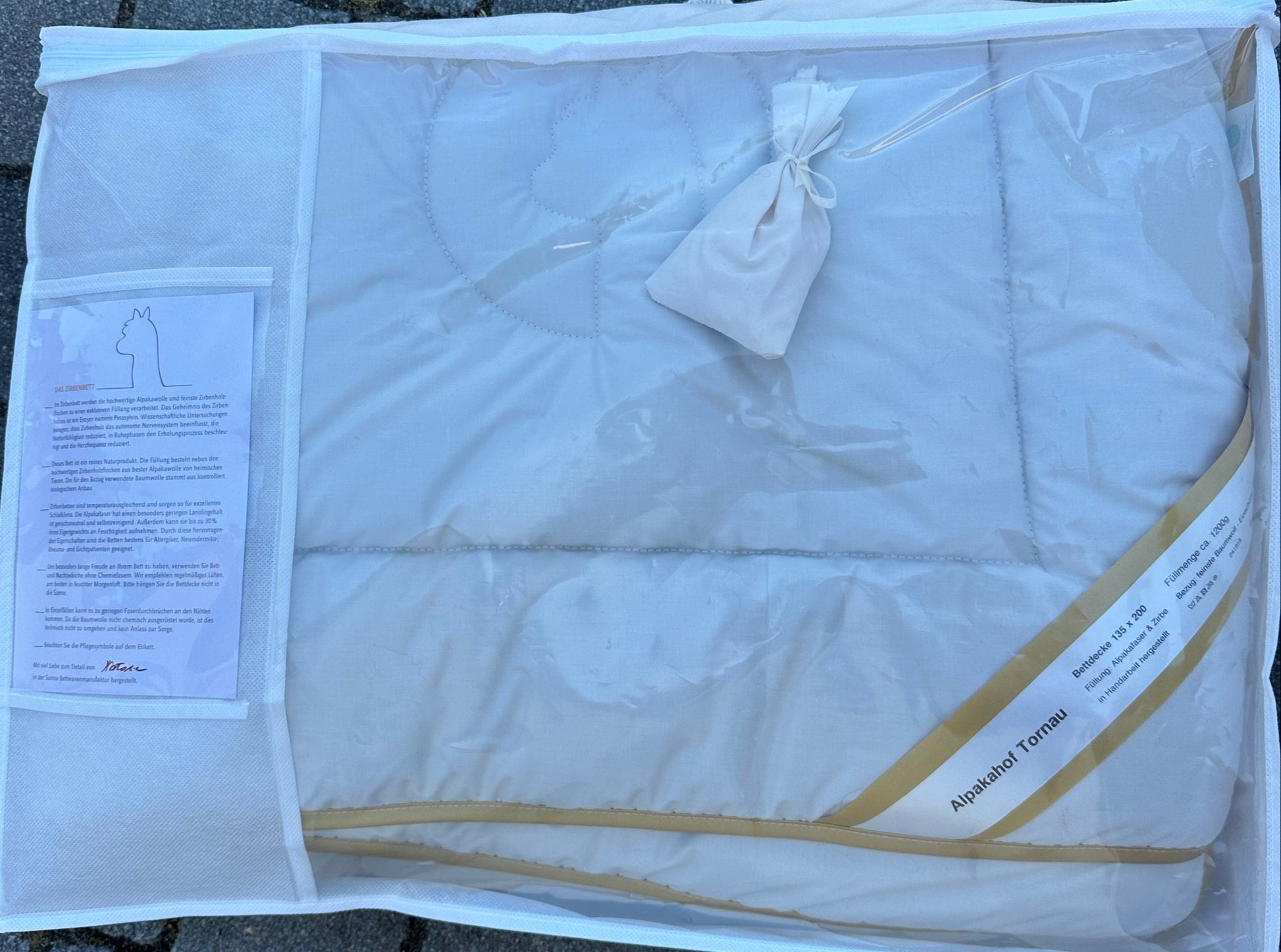 Dieses Bett ist ein reines Naturprodukt. Die Füllung besteht neben den hochwertigen Zirbenholzflocken aus bester Alpakawolle meiner eigenen Tiere. Die für den Bezug verwendete Baumwolle stammt aus kontrolliert biologischem Anbau,